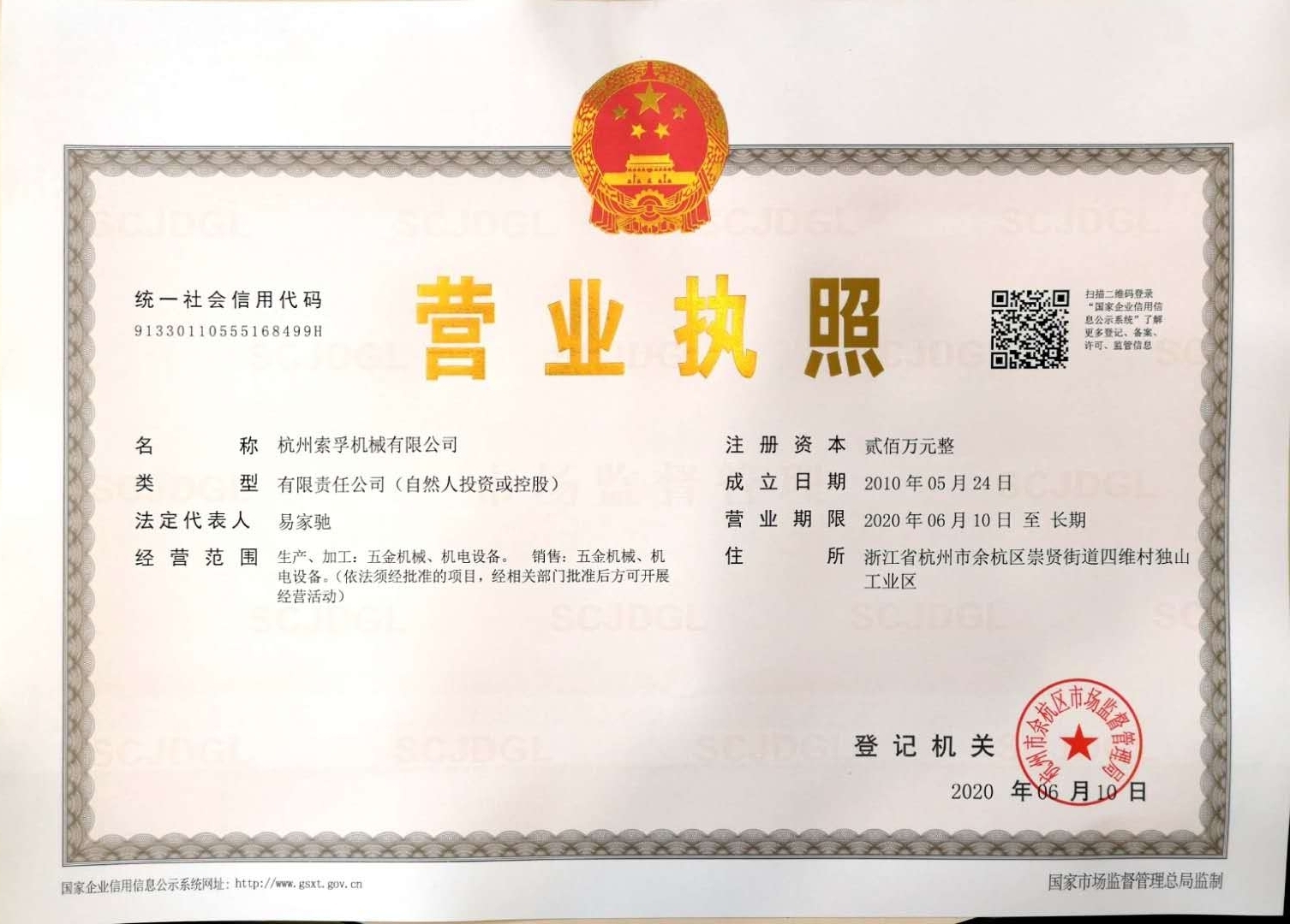 浙江索孚科技有限公司(杭州索孚機械有限公司) 有成立于2010年,經歷多年的發展壯大,目前擁有員工總數50人,其中中層以上工程師技術人員10人。公司設置有設計研發部、財務部、銷售部、生產部、采購部、售后服務部及人事部,部門相對完善,各部門相互協作,更好的服務客戶。